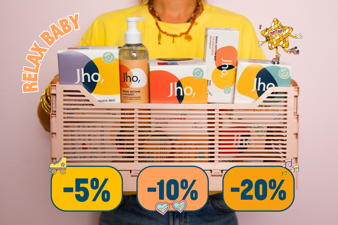 Avec Jho, vous êtes libre ! Vous pouvez acheter sur notre boutique des tampons biologiques et protections hygiéniques féminines ponctuellement ou opter pour l'abonnement et recevoir à la fréquence de votre choix (à partir de tous les mois jusqu'à tous les 6 mois). Avec l'abonnement, la livraison en point relais est offerte dès 69€. Et bien sûr, vous pouvez à tout moment modifier le contenu de votre prochain colis, avancer, repousser les prochains colis ou même résilier. Tout ça, en un clic depuis votre espace client !