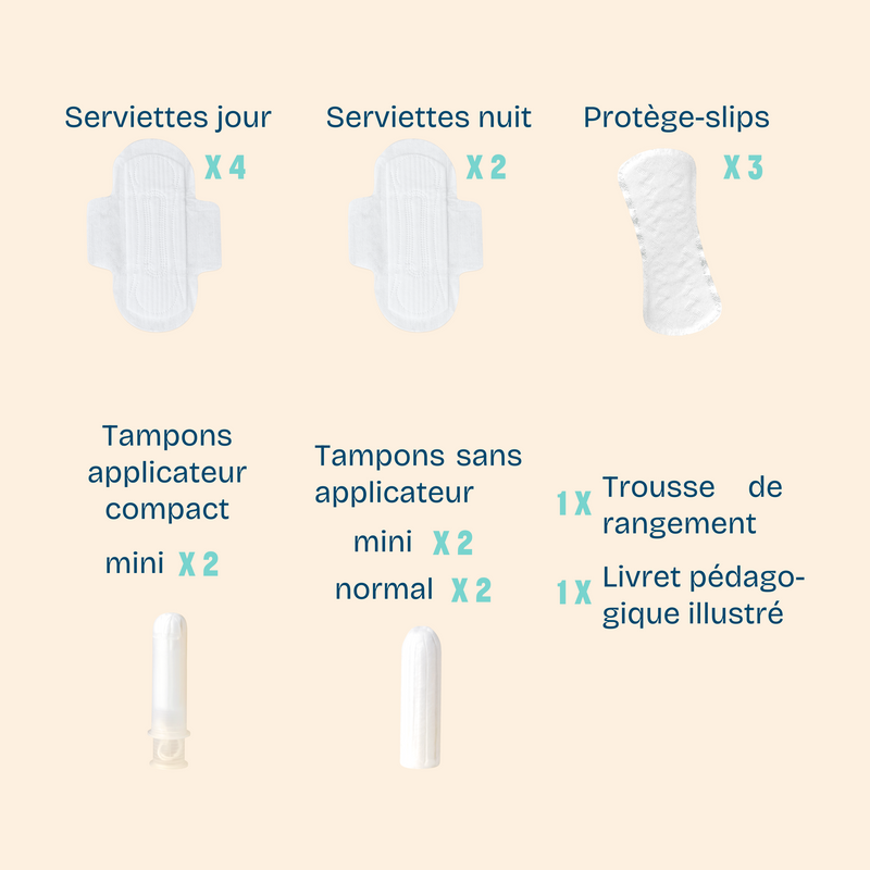 Trousse premières règles + culotte menstruelle